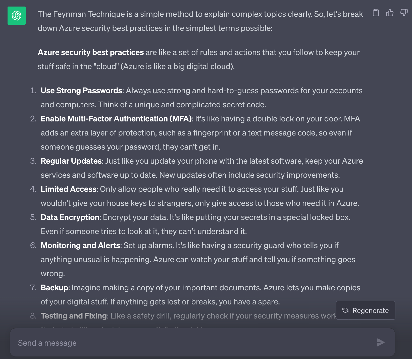 Using the Feynman technique, explain Azure security best practices to me in the simplest terms possible