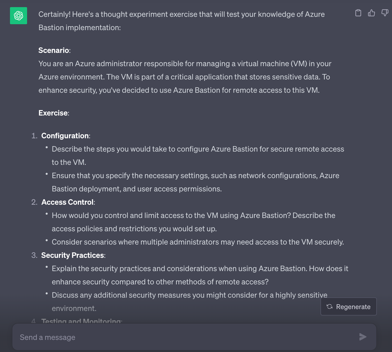 Give me a thought experiment exercise that tests my knowledge of Azure Bastion implementation
